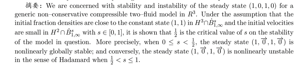 报告题目: Stability and instability of a generic non-conservative compressible two-fluid model